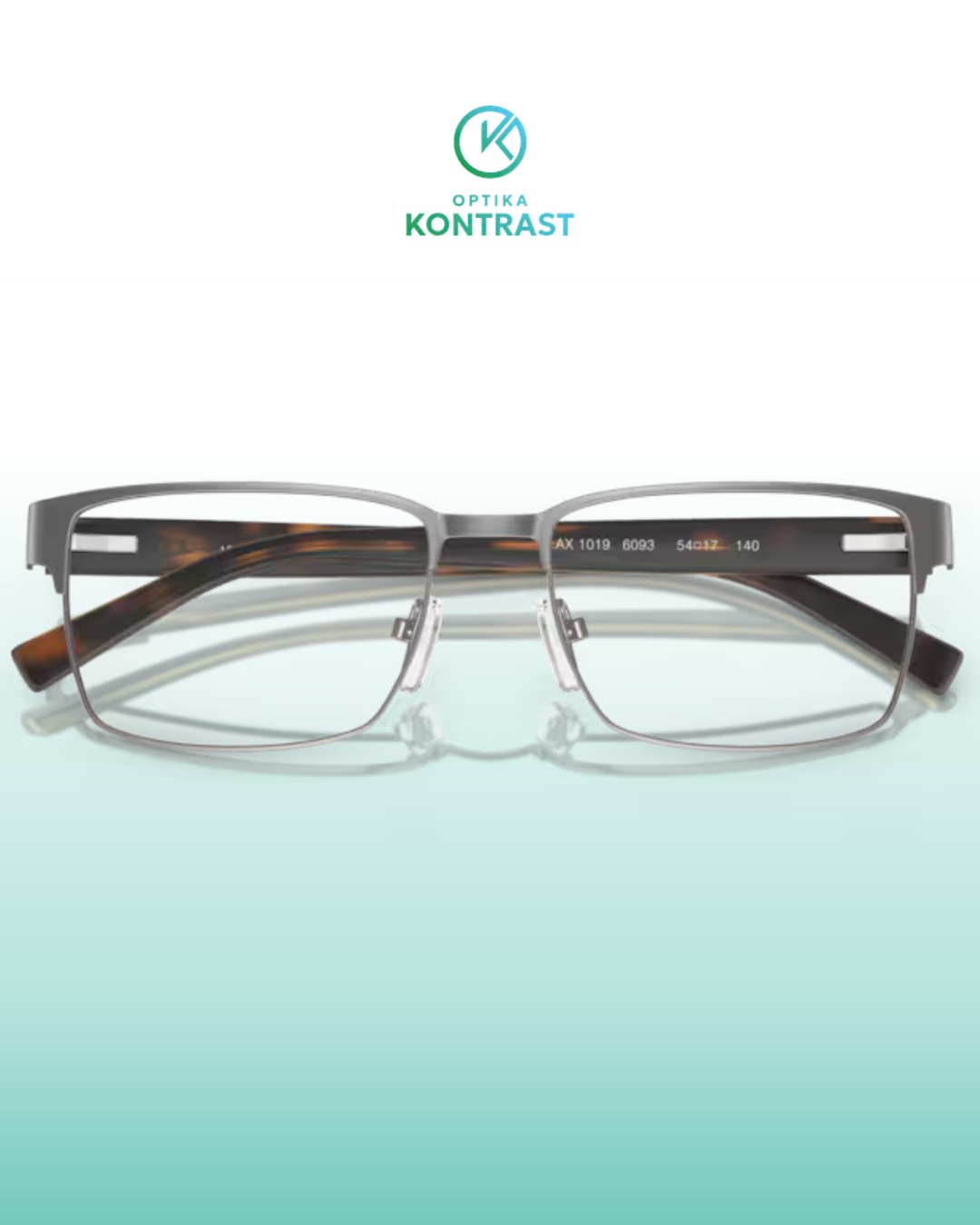 Muški metalni sivi okvir sa drškama koje su tamnobraon i imaju svetlobraon šare. Moderan i elegantan dodatak za svakodnevni stil.