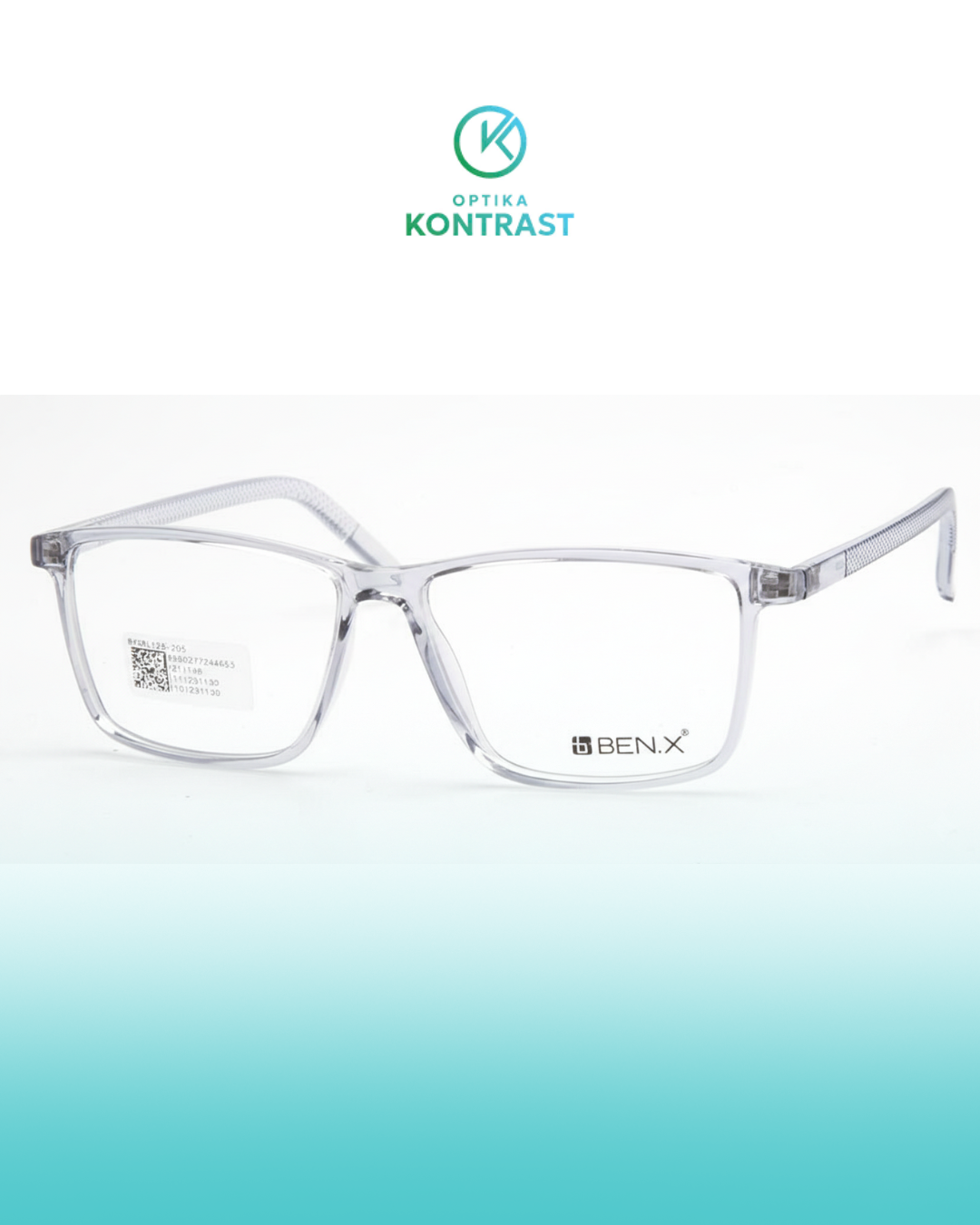 Benx ženski dioptrijski okvir u transparentnoj boji sa unikatnim 3D dizajnom na drškama. Pruža moderan, osvežavajući i upečatljiv izgled.