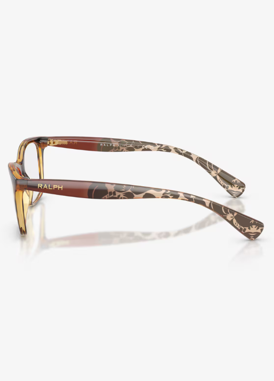 Ralph Lauren ženski dioptrijski okvir. Plastičan, braon boje sa cvetnim detaljima na drškama.