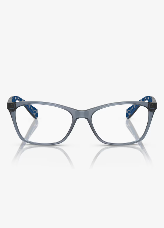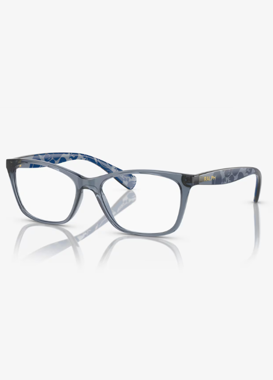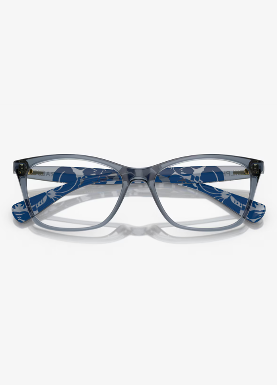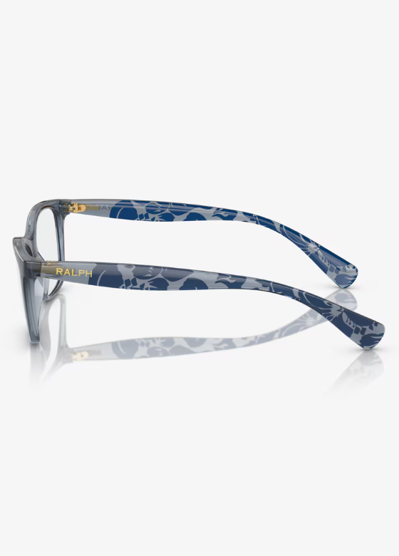 Ralph Lauren ženski dioptrijski okvir. Plastičan, prozirno plave boje, sa cvetnim motivima na drškama.