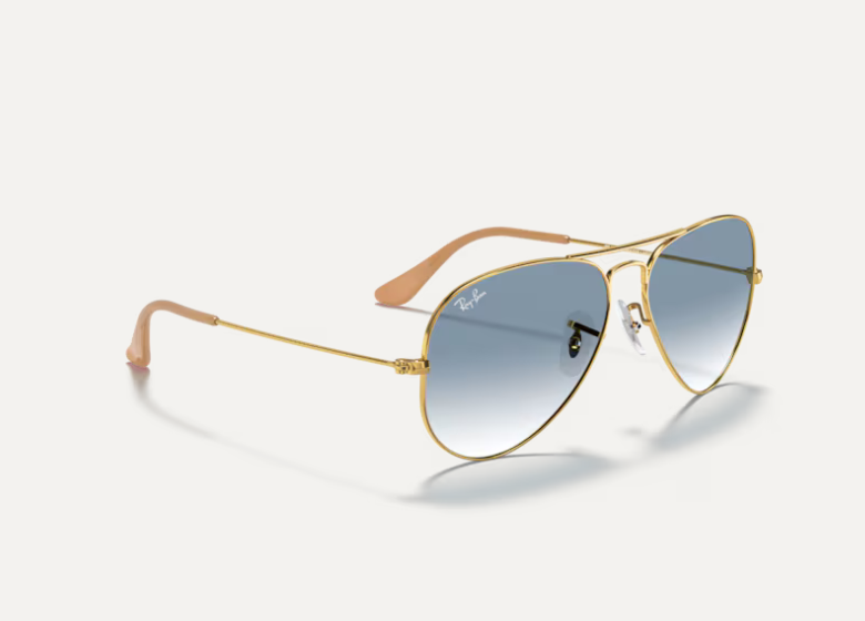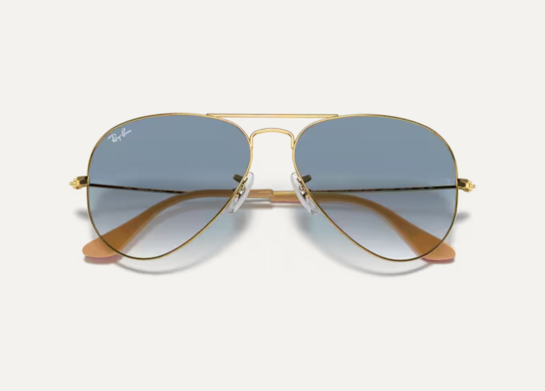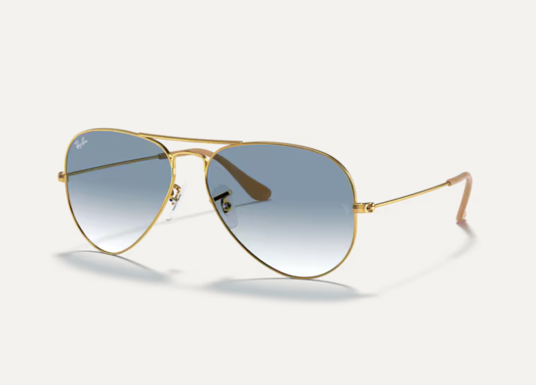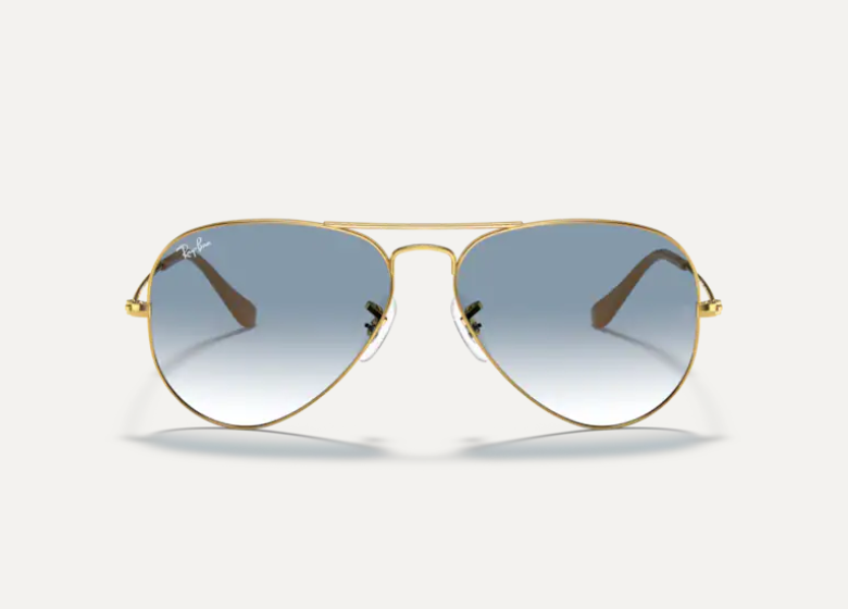 Ray-Ban naočare za sunce. Metalni ram zlatne boje sa plavim staklima koji se blago presijavaju.