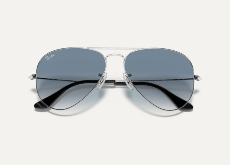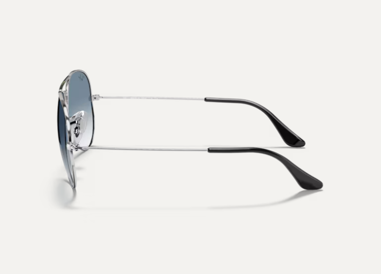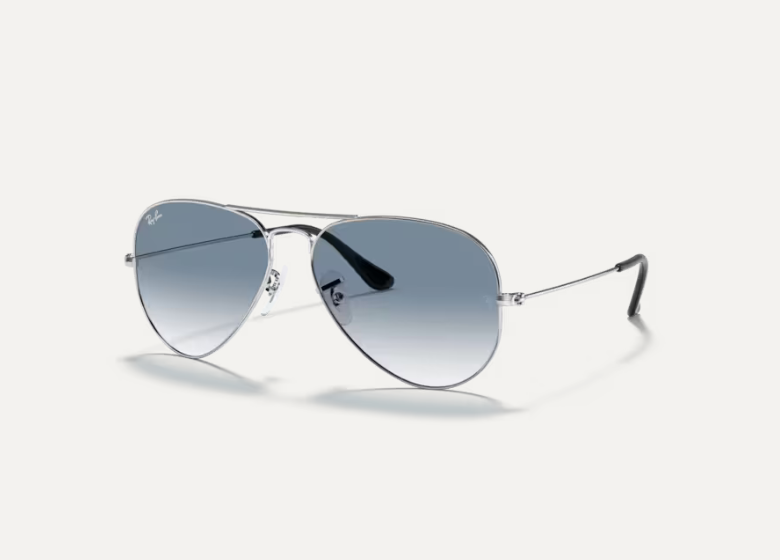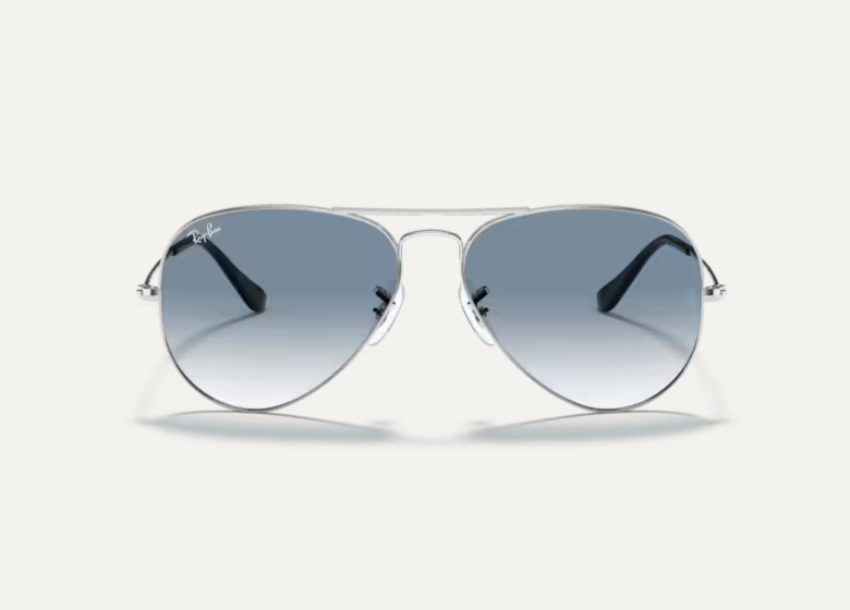 Ray-Ban Aviator sunčane naočare. Metalni okvir srebrne boje, sa staklima plave boje koja se gradualno prelama.