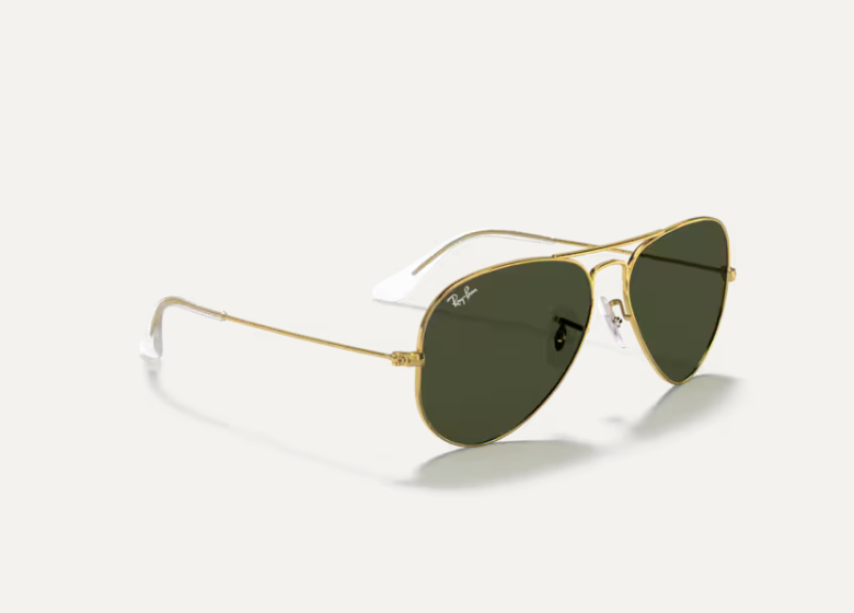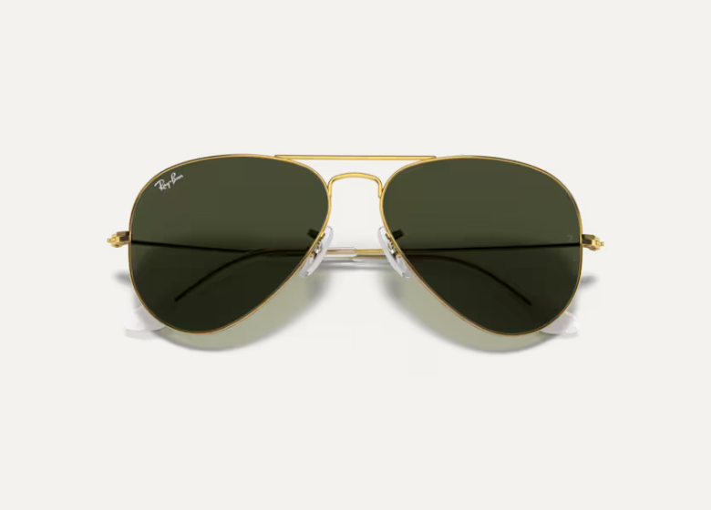 Ray-Ban naočare za sunce. Metalni okvir zlatne boje sa tamnozelenim staklima.